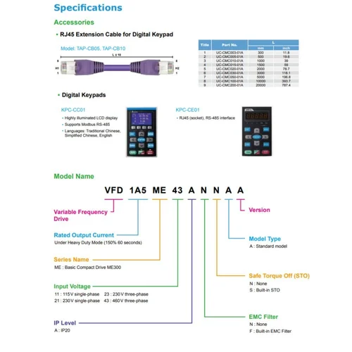 Model Name/Number | VFD-E Series |
