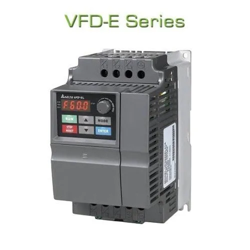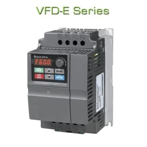 Delta E Series VFD: Delta VFD-E Series:Sensorless Vector AC Micro Drive. The VFD-E series represent Delta Electronics low horsepower, constant torque, IP20 rated Drive.