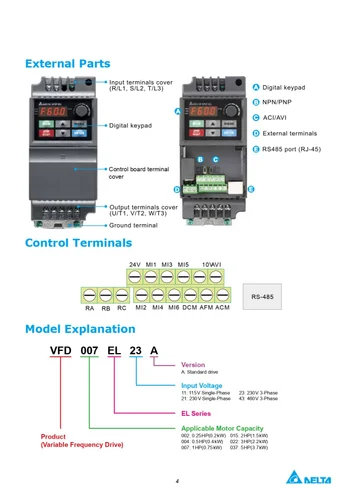 Delta EL Series VFD: Delta VFD-EL Series:The VFD-EL series is multiple function new generation micro type AC drive.